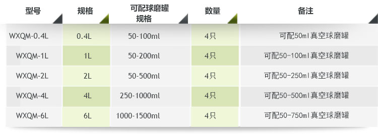 表一:輕型臥式行星式球磨機(jī)配罐參考